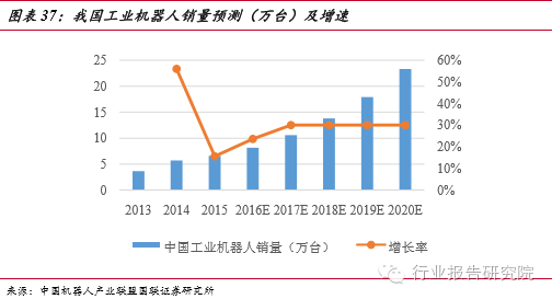 工業(yè)機(jī)器人的大規(guī)模使用,不僅可以助推企業(yè)轉(zhuǎn)型,而且也給智能制造業(yè)帶來巨大的市場需求。從全球來看,2014年工業(yè)機(jī)器人年銷售額約59億美元,銷量為22.5萬臺左右,比2013年增長 27%。我國是世界上增長最快的市場,前瞻產(chǎn)業(yè)研究院提供的數(shù)據(jù)顯示, 2015年工業(yè)機(jī)器人銷量高達(dá)66000臺,在2013 年的基礎(chǔ)上增長了 80%,繼續(xù)保持高速發(fā)展態(tài)勢。